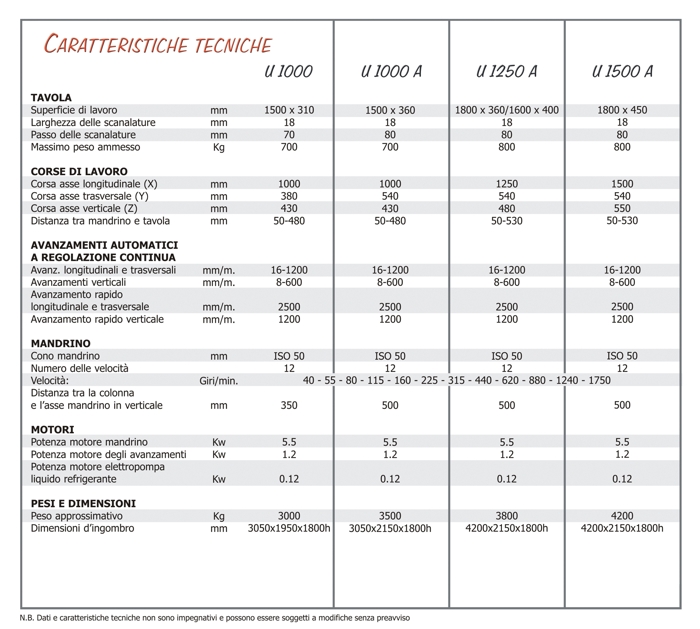 dell’insieme, le fresatrici a banco fisso della serie U 1000 offrono